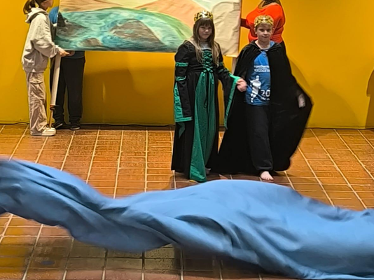 In der Schulaula präsentierten Schülerinnen und Schüler eine eindrucksvolle szenische Darstellung des bekannten Musikstücks Die Moldau von Bedřich Smetana. Mit viel Kreativität und Ausdruckskraft setzten sie die verschiedenen Stationen des Flusses – von der Quelle über Wälder, eine Jagdgesellschaft, ein Bauerntanzfest bis hin zur majestätischen Einmündung – in lebendige Bilder um.